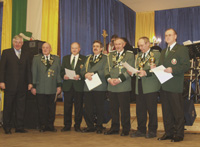 Durch den Präsidenten Harry Hachenberg wurden folgende Ehrungen übergeben: Die goldene Verdienstnadel des Deutschen Schützenbundes ging an: