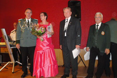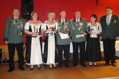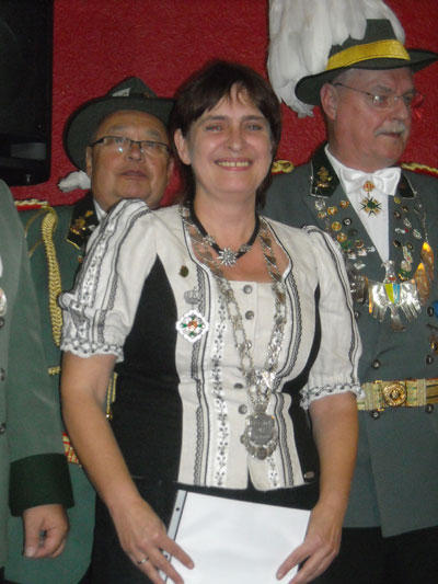 Nacheinander wurde der Kreis der Anwärter bei Nennung des Namens und des Teilers immer kleiner und die Spannung größer. Zum Schluss wurde Petra Lohmer mit einem Teiler von 4,6 zur neuen Bezirkskönigin erklärt und erhielt als äußeres Zeichen die Bezirkskönigskette.