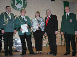 Mit der Ehrennadel des Kreises in Bronze wurde Uwe Thiele vom BSV E.-Rellinghausen-Stadtwald und Christel Orlowski vom BSV E.-Holsterhausen ausgezeichnet. Die Ehrennadel in Silber erhielt Sabine Dreesen vom Essener SV 1390 und die Ehrennadel in Gold ging an Ute Fischervom Essener SV 1390 und Heinz Kaluga vom BSV E.-Holsterhausen.